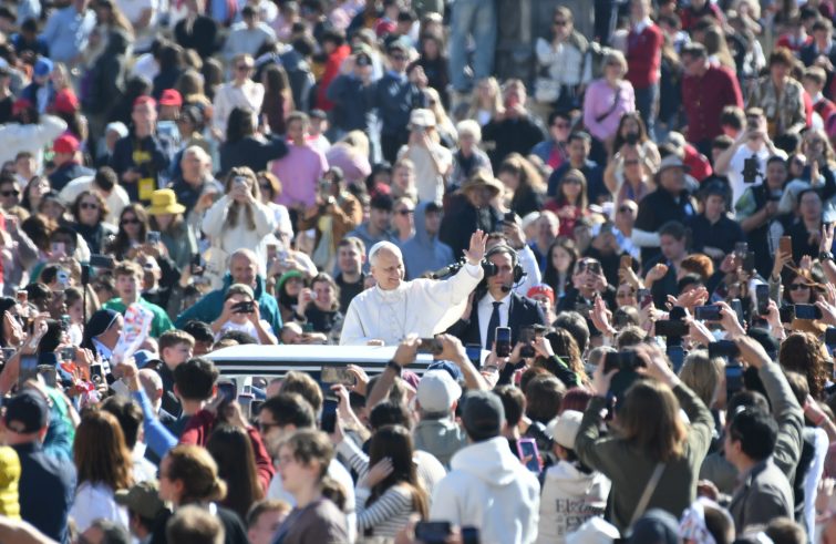 Il Papa ha fatto il suo ingresso in una piazza San Pietro stracolma di fedeli un quarto d’ora prima circa, rispetto all’inizio dell’udienza generale. A fare da sfondo, sotto il sole primaverile della Capitale, le acclamazioni gioiose della folla, munita di bandiere coloratissime. Moltissime anche le scolaresche di bambini, riconoscibili dai cappellini colorati tutti uguali. Al primo posto, come di consueto, nel giro tra i vari settori delimitati dal colonnato del Bernini, i più piccoli, che Leone XIV – apparso sorridente e rilassato – ha salutato e accarezzato, grazie al solerte aiuto degli uomini della Gendarmeria Vaticana. Immancabile la selva di cellulari, per immortalare il momento. Tra i bimbi, ce n’era anche uno vestito da papa, con tanto di zucchetto bianco sulla fronte, che il Papa ha sistemato al suo posto mentre salutava il piccolo.
