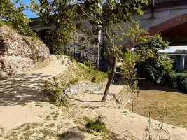 Sotto uno degli archi del ponte della ferrovia è stato ricavato anche un rifugio per la colonia felina della zona: una quarantina di gatti trovano qui cibo e riparo.