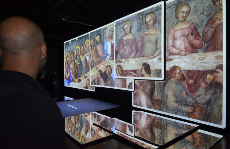 La grande novità consiste nell’ambiente narrativo realizzato dalla milanese Neo nella Sala dei canonici, all’interno della cattedrale, che introdurrà i visitatori sì alla sfolgorante bellezza dell’opera del Menabuoi, ma soprattutto ai significati del battesimo in chiave teologica proprio nel luogo in cui fin dal terzo-quarto secolo i padovani diventano cristiani. Si tratta di una serie di quattro enormi schermi, realizzati dalla Professional show di Limena, su cui scorrono immagini ad altissima definizione grazie al lavoro di tre proiettori che valorizzano dettagli specifici e visioni d’insieme dei quadri, destrutturando le pareti che il fiorentino affrescò a Padova per volontà di Fina Buzzaccarini, moglie di Francesco I da Carrara, signore della città in epoca pre-veneziana.