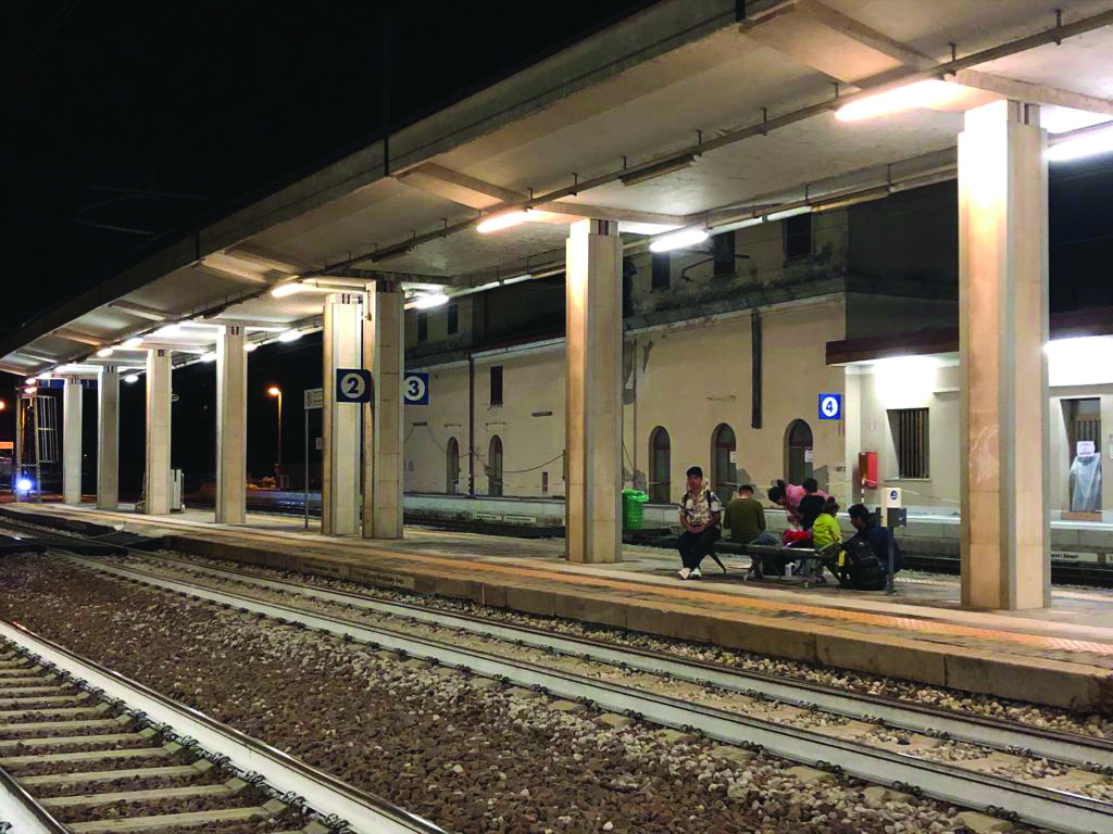 Arriviamo e ad aspettarci ci sono Francesca, un’altra Francesca, Livia e Saeed. Più tardi ci raggiunge anche Alessandro. Francesca è con il gruppo dall’inizio delle sue attività di assistenza, mentre gli altri si sono uniti nel corso dei mesi. Livia si trova in Stazione per portare un po’ di alimenti, ma poi decide di soffermarsi con noi. Il gruppo dei volontari stasera è eterogeneo, Massimo e Livia sono “i grandi” del team, gli altri sono tutti studenti tra i 18 e i 25 anni circa. Chiedo loro come sono venuti a conoscenza dell’esistenza di questo gruppo: con il passaparola, tramite i Social o tramite amici e conoscenti che si trovavano a prendere l’ultimo treno della sera per rientrare a casa o il primo del mattino per arrivare in città. Il desiderio di essere utili e di dare un po’ di conforto umano ha fatto il resto. La serata è particolarmente tranquilla, attorno alla stazione ci sono una ventina di ragazzi, mi colpisce il fatto che siano tutti estremamente giovani. Dicono di avere 18, 19, 20 anni, ma ovviamente nessuno è certo che questo sia vero. Vinta la prima paura, dopo aver compreso che non devono pagare nulla, accettano volentieri un po’ di succo di frutta, qualche merendina e qualche biscotto. Pochi parlano inglese e altrettanti pochi se la sentono di scambiare due parole (preferiscono rimanere a loro modo “invisibili”). Provengono da Pakistan, Afghanistan e Marocco. Proprio tre giovanissimi marocchini scambiano qualche parola con noi: si sono incontrati lungo la Rotta balcanica, che hanno intrapreso in modalità differenti (chi l’ha fatta completamente a piedi, chi ha avuto modo di raggiungere la Serbia via aereo) e ora desiderano stabilizzarsi in Europa. Uno di loro vorrebbe fermarsi in Italia, ha paura del razzismo ma sente che qui potrebbe creare qualcosa, gli altri proseguiranno uno per la Germania, l’altro per la Spagna, dove li attendono alcuni conoscenti. Tutti i ragazzi presenti in stazione viaggiano leggeri, sulle spalle solo uno zainetto “sgonfio”, segno che contiene poco o nulla, salvo tante speranze.