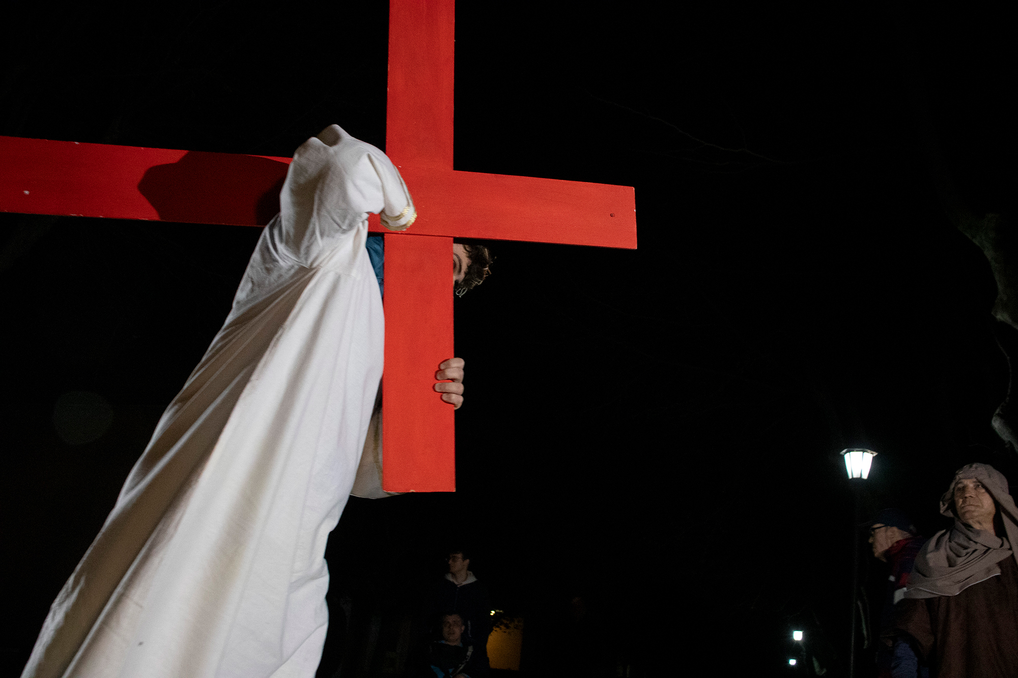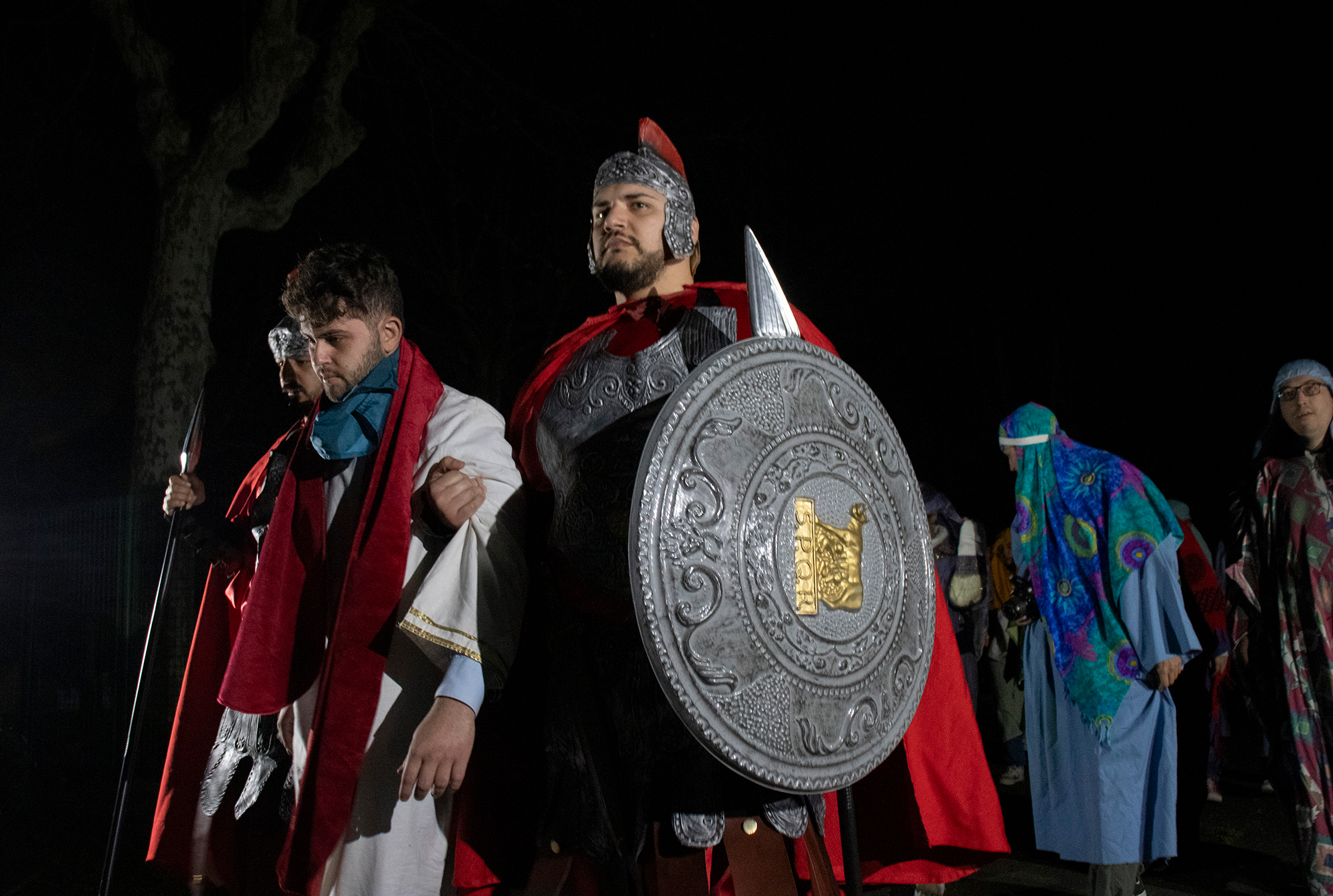 Partecipare alla rappresentazione della Passione per riflettere sul significato del dolore e della sofferenza. Don Fabio ha iniziato questo cammino con alcune domande e una considerazione che il più delle volte ci sfugge: “Che c’entra Dio con il dolore e la sofferenza? È un Dio cattivo? O buono ma distratto che permette certe cose? Oppure questi pensieri sono i nostri? Pensieri che non ci lasciano liberi ma che ci imprigionano nella nostra idea di Dio, dell’uomo, dell’umanità che purtroppo in questi giorni di violenza e di guerre sta mostrando il suo volto peggiore. Poi ci sono le malattie, il dolore innocente. Cosa fa Dio, guarda?”. Una serata, insomma, per scorgere in qualche modo il volto di Dio Padre, per cogliere il significato di questa rappresentazione, per passare da spettatori a protagonisti, scegliendo – come ha aggiunto don Fabio – “quale parte vogliamo rappresentare della Passione di Cristo, chi vogliamo essere, da che parte vogliamo stare”.