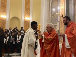 Durante la celebrazione, l’arcivescovo Francesco Alfano ha sottolineato l’importanza della tappa che Joseph e tutta la comunità hanno vissuto. “Si tratta di nascere a vita nuova. I sacramenti dell’iniziazione cristiana che tu ricevi, il Battesimo, la Confermazione, l’Eucaristia – ha affermato nell’omelia rivolgendosi al ragazzo -, sono un tesoro prezioso e a chi li chiedi ti introduce e te li fa scoprire nella loro bellezza consegnandoteli. Tu hai chiesto alla comunità non solo di essere accolto e voluto bene – e questo quanto è importante – ma di spiegarti il segreto della nostra gioia, di aiutarti a conoscere Colui che ci tiene uniti insieme, di donarti quel tesoro che ci rende ricchi di una ricchezza che nessuno ci può togliere”. “Consegnando a Joseph che cosa siamo noi e a cosa siamo chiamati noi – ha proseguito il presule, rivolgendosi a tutta la comunità -, ci ricordiamo che il centro non siamo noi. Al centro c’è il Signore, che ci raduna intorno a sé, così quando accogliamo un nuovo fratello o sorella lo aiutiamo a rinascere a vita nuova e anche noi capiamo che il centro è Gesù, il Suo Vangelo. La fede è per tutti i popoli, Gesù non è venuto per una tradizione, una cultura, una lingua”.