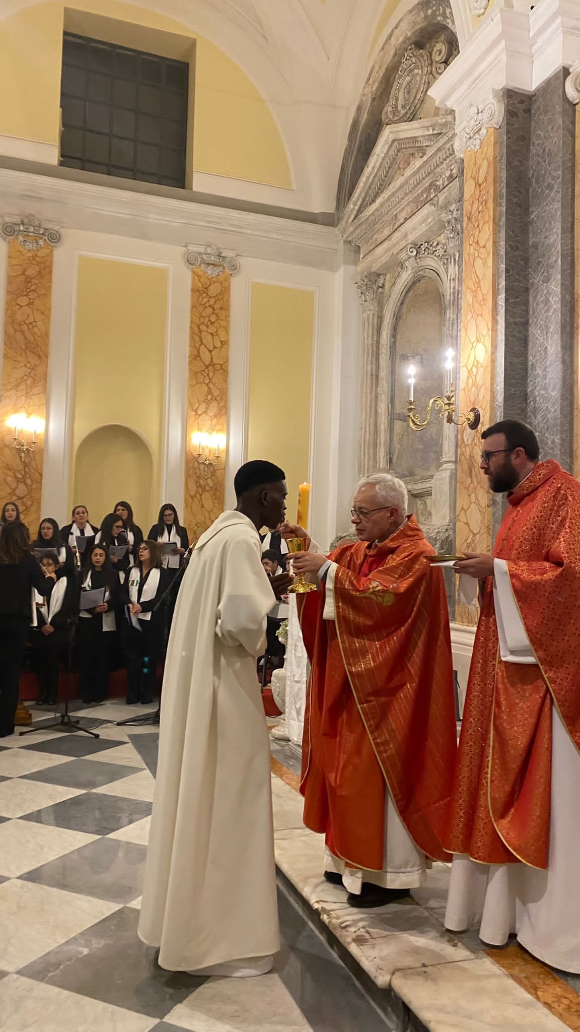 La mamma, figura fondamentale per la fede del figlio, ha potuto seguire tutta la celebrazione grazie alla diretta sulla pagina Facebook della parrocchia. Anche lei si è emozionata molto, come il fratello, che è venuto per l’occasione. Joseph è in contatto con la sua famiglia di origine, anche con videochiamate alla mamma restata in Nigeria. E alla fine della messa, dopo la benedizione, c’è stata una sorpresa della corale parrocchiale per Joseph: “Abbiamo preparato il canto africano che la mamma gli cantava e lui ci ha fatto conoscere: lo abbiamo cantato a fine messa, dopo la benedizione, per ricordare la sua mamma, le sue origini. Joseph si è inginocchiato commosso”.
