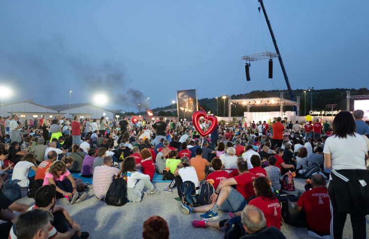 “Come è possibile tutto questo?”. È la domanda del popolo della notte, degli oltre 60mila che, sabato 8 giugno, si sono dati appuntamento per lo storico Pellegrinaggio a piedi Macerata-Loreto, proposto da Comunione e Liberazione. L’edizione numero 46 non delude le attese. Cambiano la location di partenza (il Centro Fiere di Villa Potenza, essendo in via di rifacimento lo stadio Helvia Recina) e la logistica (con circa 4 km in meno di percorso), ma non certo il cuore con cui ci si mette in cammino verso la Santa Casa. Mons. Giancarlo Vecerrica in primis, vescovo emerito di Fabriano-Matelica e instancabile anima di questo gesto, che, nonostante lo scorrere veloce degli anni, da quel lontano 1978 continua a rappresentare una novità straripante di stupore e devozione. È il week end “caldo” delle elezioni europee e amministrative, dei primi assaggi di mare, ma svago e dovere civico non frenano quel desiderio insito nell’animo umano, scandito da un tema alquanto sfidante scelto per il 2024 e acceso dalla Fiaccola della Pace che, retta dai tedofori in corsa, arde sul braciere come segno di fiduciosa attesa. Quella pace ribadita più volte all’inizio dell’evento, in quell’area fieristica già resa speciale, nel 1993, dalla visita di san Giovanni Paolo II. Quella pace che riecheggia nelle video messaggio del card. Pierbattista Pizzaballa, Patriarca di Gerusalemme dei Latini, che sulla guerra tra Israele e Hamas si appella al realismo: “Queste ferite avranno bisogno di molto tempo per essere guarite. La riconciliazione avrà tempi lunghi ma ha bisogno di qualcuno che la proponga, che si chieda, proprio come fate voi questa notte: all’interrogativo ‘Come è possibile tutto questo?’ si aggiunga allora ‘Sia fatta la tua volontà’”.