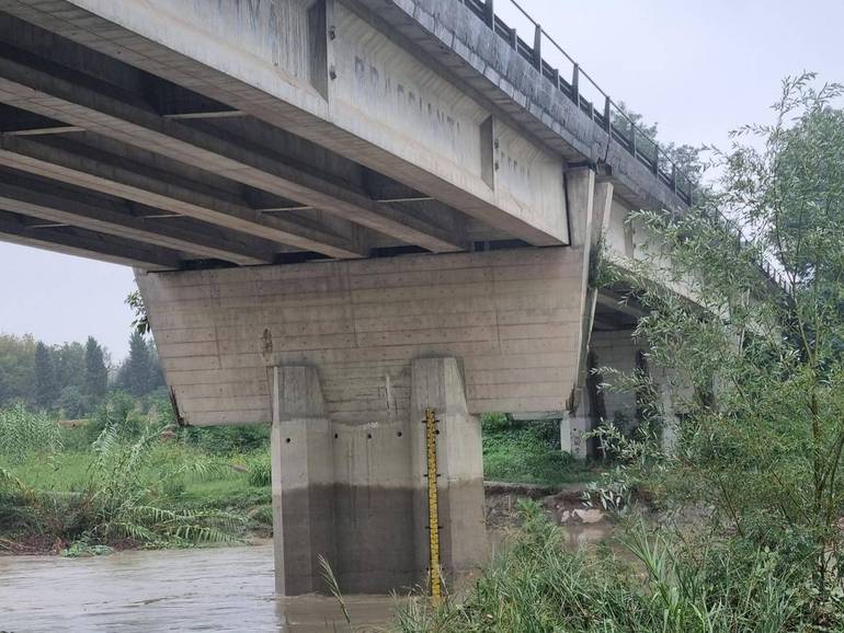 “Si è abbassato di due metri, rispetto a questa notte”. Il soggetto è sottointeso. Lo sguardo di chi guarda questo pezzo di campagna che dal Cesenate si allunga verso il Ravennate, questa mattina, forse, è un poco sollevato dal pensiero che il peggio sembra essere passato. Siamo accanto al fiume Savio, nel tratto tra Martorano e Ronta di Cesena. La via Ravennate è poco frequentata considerando l’ora di prima mattina. L’allerta rossa invita tanti a non mettersi in strada. Il cielo è grigio e i pensieri assomigliano troppo a quelli del maggio 2023. Anche il cappellino antipioggia è lo stesso, solo macchiato da uno schizzo di fango che non era solo fango. Le acque fangose hanno da poco oltrepassato il centro città, con il ponte Vecchio e il ponte Nuovo e ora corrono veloci verso il mare. “Che fortunatamente riceve bene la massa d’acqua, ma deve vedere a Matellica come spinge la fiumana”, sono le parole di Giuseppe Fusconi, che da San Martino in Fiume dove abita, sta costantemente monitorando il livello del Savio. I ricordi del maggio 2023 sono ben nitidi, oltre le fotografie che ancora sono nella galleria del cellulare: “Il livello è stato decisamente più basso rispetto a maggio dello scorso anno – prosegue Fusconi – . Vede quelle piante, oltre alla pista ciclabile? Lo scorso anno, quegli alberi di albicocche e pesche erano quasi completamente sommersi. Sembravano piante di fagiolini…”. Che sia stata una notte difficile per i tanti che abitano a ridosso del fiume lo conferma anche la signora Anna Cacchi: “All’1 è stato il momento più preoccupante. Il livello è diminuito con il calo di intensità della pioggia”. Il pluviometro installato sul pilone del ponte di via Torino, tra Martorano e Pievesestina, segna una netta diminuzione del livello dell’acqua.