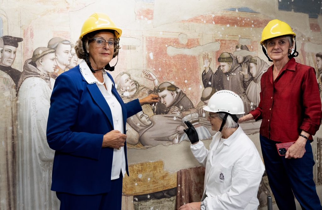L’intervento condotto sulle Storie di San Francesco, narrate da Giotto nella Cappella Bardi in Santa Croce, apre un capitolo importante nella storia del restauro e costituisce una irripetibile occasione di conoscenza del maestro fiorentino, accostandoci anche al quotidiano operare di colui che fu uno straordinario innovatore. Ad annunciarlo sono Cristina Acidini, presidente dell’Opera di Santa Croce, ed Emanuela Daffra, soprintendente dell’Opificio delle Pietre Dure (Opd) a cui il restauro è stato affidato. Le motivazioni di questo impegno lungo e complesso sono da ricercare nelle precarie condizioni conservative del ciclo, che arrivavano anche a occultarne una corretta leggibilità. Numerose e assolutamente preziose sono le informazioni già raccolte a conclusione della prima fase del restauro avviato nel giugno 2022, in forza della collaborazione tra l’Opera di Santa Croce e l’Opificio delle Pietre Dure, con il significativo contributo della Fondazione CR Firenze rappresentata oggi dalla vicepresidente Maria Oliva Scaramuzzi, e dell’Associazione per il Restauro del Patrimonio Artistico Italiano (ARPAI) per la quale è presente la presidente Dominique Marzotto Desforges. Il progetto viene da lontano e nasce dalla determinazione del compianto Marco Ciatti, già Soprintendente dell’Opificio, che mise a punto e firmò il primo accordo tra OPD, Opera di Santa Croce e ARPAI per il sostegno all’intervento. L’intervento, preceduto e accompagnato da un’approfondita campagna diagnostica pianificata e condotta dall’Opificio, vede il coinvolgimento attivo di centri di ricerca e professionisti di rilevo internazionale, sotto l’alta sorveglianza della Soprintendenza Archeologia, Belle arti e Paesaggio.