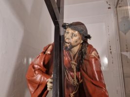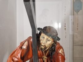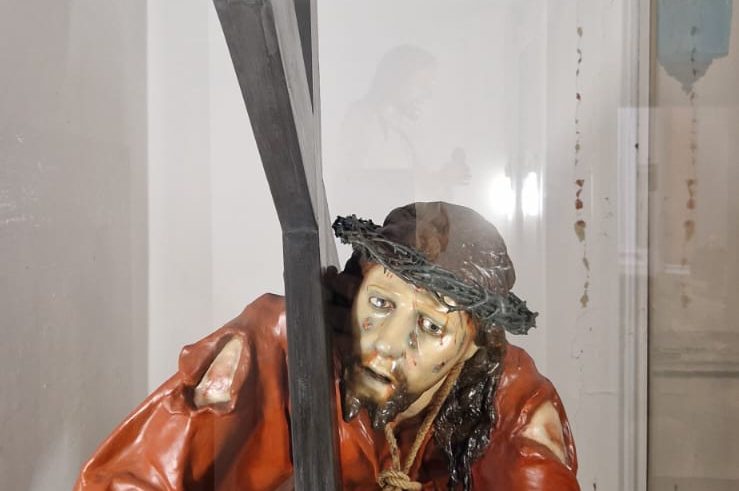 Tale vitalità è tangibile in ogni statua dei Misteri, dalla più sobria a quella più ricca di minuziosi dettagli. Nel Gesù vestito da pazzo, attribuita a Nicola Distante, “Gesù, deriso da Erode, è vestito di bianco come gli infermi mentali, secondo l’antica tradizione ebraica. La sua forma essenziale – precisa Balsamo – racchiude un valore artistico altissimo, perché in un solo elemento, lo sguardo, comunica un messaggio di profonda umanità”. Spicca poi per la sua maestosità, l’Addolorata che, probabilmente di scuola veneziana, è stata recentemente adornata con un nuovo e sontuoso abito. “Rappresentata come una nobildonna dallo sguardo interrogativo, sembra chiedersi: ‘Perché?’. Una domanda che risuona nel cuore di ciascuno di noi nei momenti di sconforto e di prova.” Tra le statue del Pinca, invece, non passano inosservate La Colonna e Ecce Homo. Pur con proporzioni insolite (polpacci, mani e piedi appaiono più grandi rispetto al corpo) catturano per alcuni dettagli che parlano direttamente all’anima: gli occhi che sembrano seguire lo sguardo dello spettatore, le ferite livide e i rivoli di sangue che solcano il corpo martoriato di Gesù”.