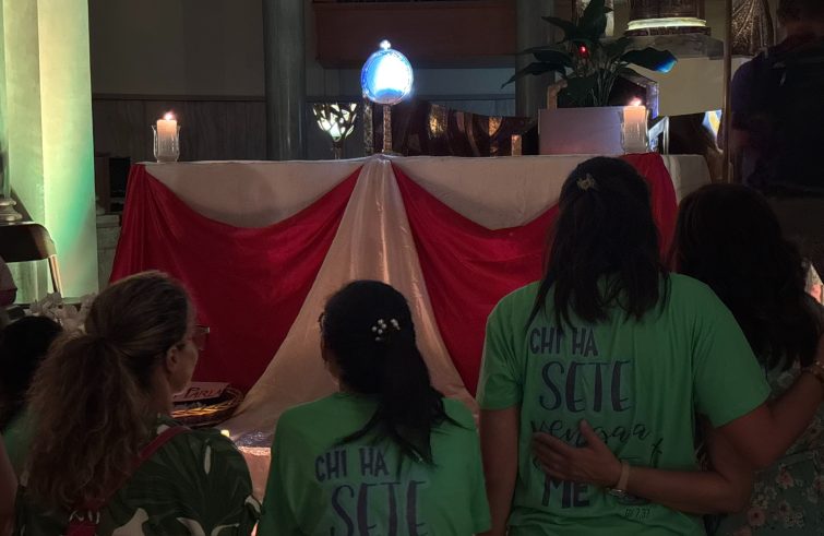 La luce della notte si svolge in chiesa verso le 22:30 quando le fatiche della giornata chiedono solo di essere ascoltate. Il Santissimo viene esposto sull’altare come faro che indica la direzione, l’altare stesso diventa luogo di pregiata bellezza, una culla per i cuori affaticati e oppressi. La Chiesa diventa Casa, calda e accogliente. Le porte spalancate verso l’esterno perché ciò che entra non venga distinto da ciò che esce, perché Dio lascia ai suoi figli la libertà di entrare in casa sua, senza chiedere nulla in cambio. Dio ci invita a stare con lui, ad entrare così come siamo. Con le nostre fragilità, le nostre paure, le nostre incertezze, i nostri sbagli, i sensi di colpa e le fatiche che ogni giorno portiamo con noi.